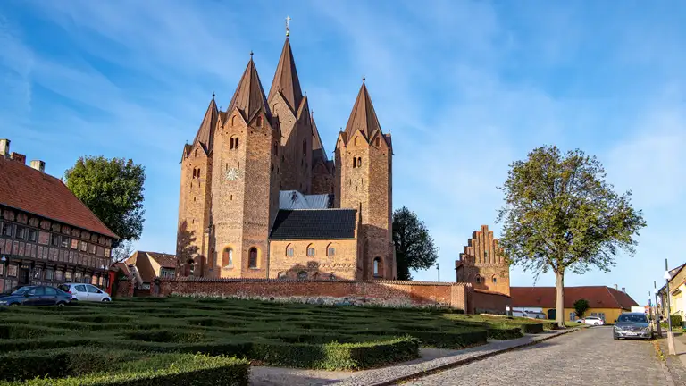 On the peaked cobblestones of Kalundborg, next to the five towers of the Church of Our Lady (Vor Frue Kirke), lies the Bishop's Manor. It belonged to the bishop of Roskilde for several hundred years and has since been used as a city council chamber. Today, it houses a gallery and serves as the headquarters for Kalundborg's art association.